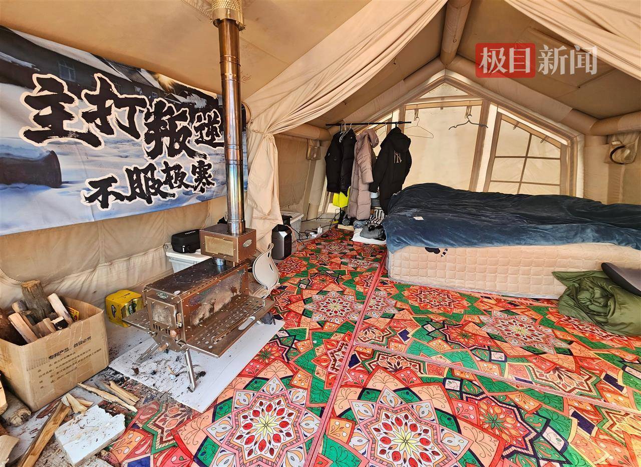 极目新闻记者注意到,老顾和康康夫妻俩在搭建的两顶帐篷内放置了柴火炉。其中,一间作为厨房,另一间作为卧室。同时,“叛逆夫妇”账号坚持在每天凌晨、中午和晚上做三场直播,每次直播两小时,主题分为三类,为想要自驾游的网友们提供户外生活经验分享,制作陕西美食,以及带货销售。来到中国最北极,全国气温最低的城市之一,他们想挑战极端低温天气。他们在漠河直播的主题是“挑战极寒”。